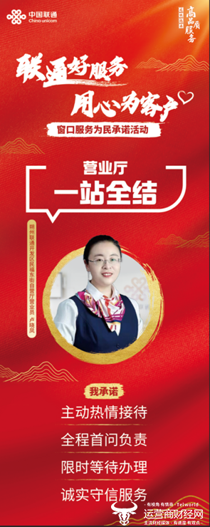 卢晓凤,这朵联通“服务之花”,徐徐如风、温婉如玉,绽放在联通营业岗位上,走近你、走近我、走近千家万户。她传递着联通美好、诚信专业、用心为客户的服务精神,践行着人民邮电为人民的服务宗旨,用“实干”践行初心,用“服务”彰显担当,让高品质服务的旗帜永远飘扬。