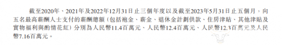 据公司招股书显示,截至2020年、2021年及2022年底止三个年度,公司向五名最高薪酬人士支付的薪酬总额分别为人民币11.4百万元、12.4百万元和12.3百万元,不知郑文滨薪酬是否在其中。