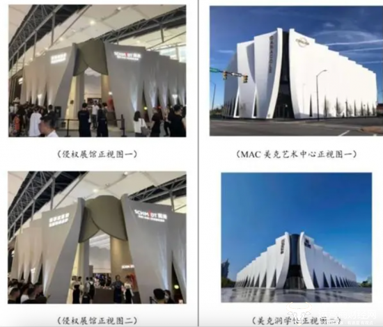 今年7月,美克家居发布了声明,称索菲亚旗下的司米橱柜在2023年建博会上的展位建造侵权美克家居,还晒出了对比图,认为司米家居抄袭美克艺术中心和美克洞学馆。还晒出了对比图。