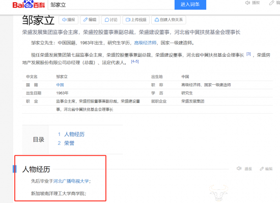 邹家立出生于1963年,今年60岁,已到法定退休年龄,硕士学历。他先后毕业于河北广播电视大学,新加坡南洋理工大学商学院,拥有高级经济师、国家一级建造师的执业资格。其中,河北广播电视大学是成人教育文凭,显然,邹家立的全日制第一学历不明。