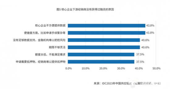 据IDC研究显示,可用于支持风控决策的相关数据缺乏是下游经销商融资获得性低的主要原因。供应链下游企业多为中小微企业,其财务制度并不完善,在申请贷款过程中能够提供的数据较为有限,而供应链金融风控往往需涉及从原材料到成品、流通、仓储、消费等诸多环节的相关数据,金融机构进行风控调研成本较大。