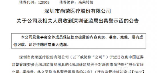 据尚荣医疗在去年11月30日披露的收到深圳证监局出具警示函的公告,2021年3月,仲裁机构受理尚荣医疗与相关方的工程款纠纷仲裁案,但尚荣医疗在获悉后未及时披露,直到次年1月才披露该仲裁。