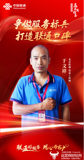 “匠心网络,贴心服务”,这是于文祥一直秉持的服务理念。作为北京联通智家铁军的一员,于文祥将继续在联通高品质服务的道路上不断前行,为联通“近悦远来”的优质口碑增砖添瓦。