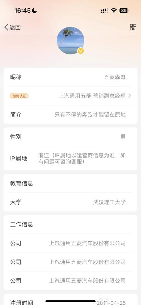 网上有关王伟森的个人信息资料不多。不过他在个人社交媒体平台颇为活跃。因此,运营商财经网得以通过“五菱森哥”的个人信息简介发现,王伟森可能毕业于武汉理工大学。