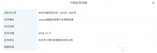 另外,2018年罗马仕还因为旗舰店销售不合格商品案受到了杭州市工商行政管理局余杭分局的行政处罚。
