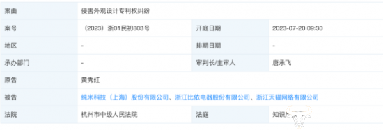 值得一提的是,今年比依股份还卷入了一场有关侵害外观设计专利权的纠纷,和纯米科技、天猫网络一起被告上了法院,不过案件目前还没有出结果。