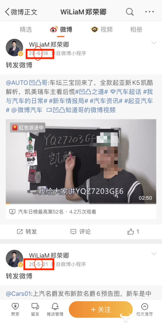根据郑荣卿个人社媒平台更新的内容来看,2020年5月他还在转发上汽名爵相关内容,到了6月,转发的内容就变成了和起亚相关。据此判断他有可能是在此期间完成了跳槽。