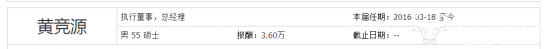 运营商财经网注意到,同花顺网站显示,黄竞源的年薪为3.6万,这怎么可能呢?不知道是否写错了。