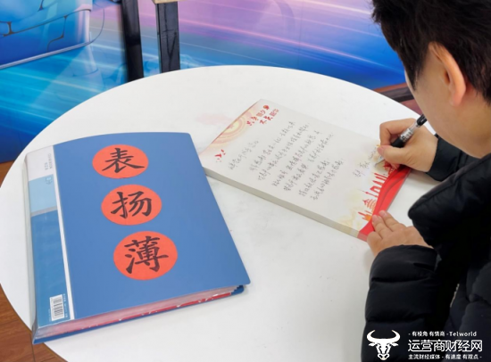 西单营业厅内一客户正在手写表扬信