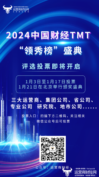 (可通过扫描上方二维码或者搜索关注 运营商财经(yyscjw2)微信公众号,为入围参评的奖项投票,每个奖项每人每天可投一票。投票时间为:2024年1月3日-2024年1月17日。)