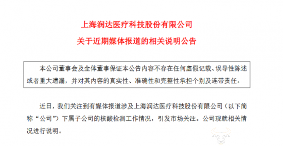 5月11日,上交所对润达医疗下发监管函,要求其就媒体报道相关事项做出工作要求。同日,润达医疗发布说明公告,称日常严格按照实验室规范流程进行检测,对于舆情,公司高度重视,已要求中科实验室就相关情况启动内部自查并配合有关部门调查等。