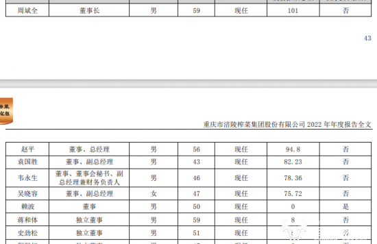 公告称,自2000年加入公司以来,周斌全把一个濒临破产、资不抵债的国有榨菜企业发展成为如今净资产 80.77 亿元,年税利过 10 亿元的国有控股上市公司,为涪陵榨菜产业发展书写了辉煌篇章,贡献很大,涪陵榨菜的品牌如今无人不知。