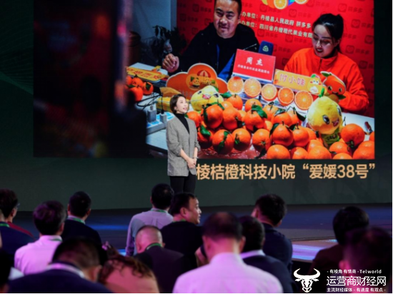 ▲拼多多支持“科技小院”赛事,鼓励学子将产学研融合,并应用到具体的生产中。图为拼多多副总裁侯凯笛分享丹棱桔橙科技小院优化“爱媛38号”种植技术的故事。