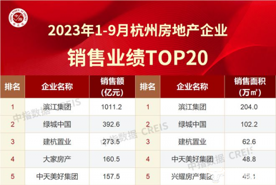 2023年前三季度,建杭置业以273.5亿元的销售额、62.6万㎡的销售面积排在杭州房企第三名。
