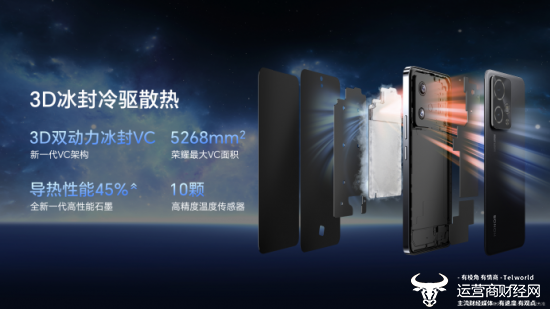 此外,荣耀90 GT采用创新3D冰封冷驱散热VC解决方案,集先进工艺、新型材料、超大均热板面积、超大单腔体积,极致轻薄于一身,配合第三代高导热石墨片与智能热管理系统,提供超越档位性能手机的散热体验,时刻保证芯片性能的充分释放。