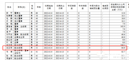 2022年年报显示,田正军从公司获得的税前报酬总额为84.9万元,与公司同级别其他高管相比相差不大,整体还不错,但比副总之一的宋志奇少了20多万。