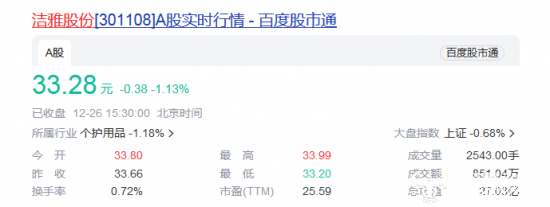 截至到12月26日收盘,洁雅股份报收33.28元/股,总市值达27.03亿元。目前,蔡英传持有洁雅股份4294.61万股,占比52.88%,如按报收股价来算,总金额高约14.3亿元。