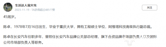 此外,陈卓是在今年2月被聘任为阿维塔科技高级执行副总裁的,距离这次升任为总裁,不过十个月时间。从2022年至今,升职颇为频繁。