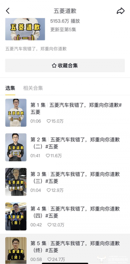 涉事主持人积极回应五菱方律师函中的要求,节目官方账号将“五菱道歉”做成了合集。