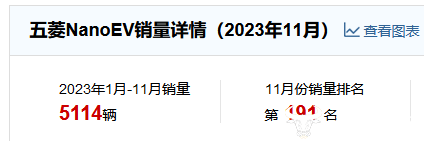 有数据显示,五菱Nano EV在今年前十一个月的销量为5114辆。如果数据来源准确,可见该车型销量并不出彩。