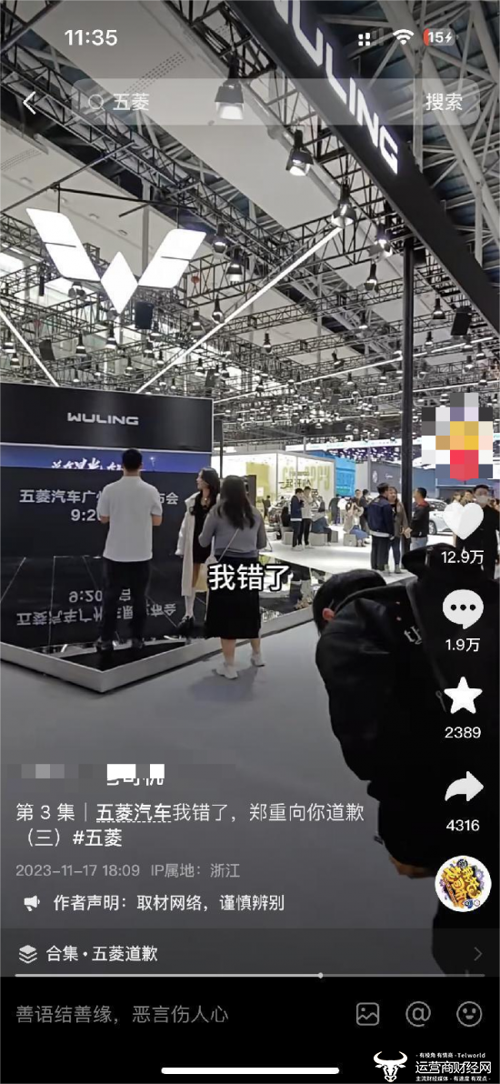 有意思的是,在第三个视频中,该名主持人亲自来到广州国际车展,向相关负责人和五菱展台道歉。他在视频中表示:因为律师函的严谨性,我应在正式接到五菱汽车的解除道歉律师函之前,不能够停止道歉行为,直到收到律师函为止。