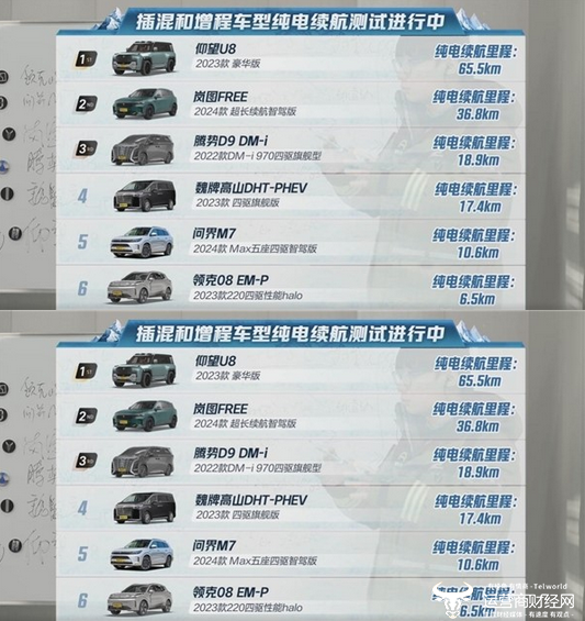 运营商财经网注意到,目前市场上在售的插混和增程车型不下50辆,从各车企官网信息来看,汽车自媒体披露的测试车型,并不是市场上插混和增程车型中纯电续航里程最高的。暂不清楚是按照什么标准选择的测试车型。