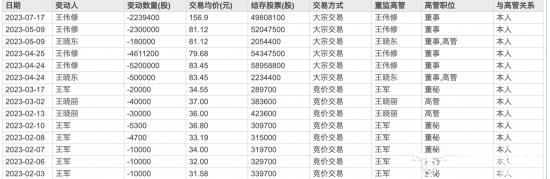 公司今年有不少高管都进行了大额的减持。从2月开始,副总经理兼董秘王军前后减持了6万股,总金额超过200万元。
