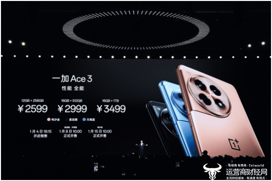 一加 Ace 3 星辰黑和月海蓝配色将于 1月 8日 10:00 正式开售,鸣沙金配色将于1月 15日 10:00正式开售。1月 4日 16:15一加Ace 3三款配色将在 OPPO商城、京东、天猫、拼多多、抖音等平台开启预售,首批购机用户可享限时分期免息、屏碎保两年五折购与以旧换新等丰富服务。