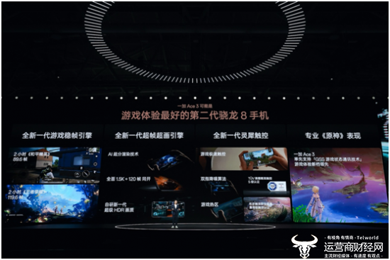 一加 Ace 3 搭载独显芯片,配合全新一代「游戏稳帧引擎」、「超帧超画引擎」与「灵犀触控」,可针对游戏指令进行资源合理化重新分配,提升图形渲染效率,实现了所有游戏 120 帧超帧和 1.5K 超级分辨率同开,达成了双指百万次 0断触,普及了新一代自研超级 HDR画质,为游戏玩家带来长时间的流畅满帧、清晰自然的游戏画质与多手指跟手稳定。