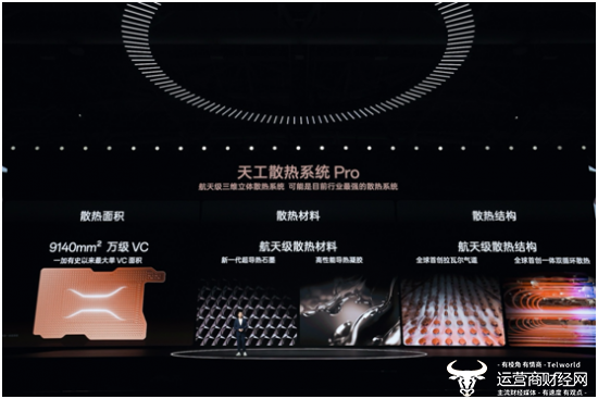 一加 Ace 3 搭载旗舰同款航天级「天工散热系统Pro」,拥有 9140mm² 万级单VC,使用行业最 先进的航天级新一代超导热材料和全球首创的航天级空间散热结构,散热面积、散热材料、空间结构三维发力,护航性能持续稳定指出。