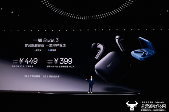 一加 Buds 3 耳机将于 1月 4日开启预售,1月 8日正式开售,售价 499 元,首销立减 50 元,搭配一加 Ace 3 购买优惠 100 元。一加 Ace 3全包保护壳系列将于 1月 4日 16:00 正式开售,素皮质感全包保护壳售价 99 元,手机加购价 69 元;砂岩质感全包保护壳,售价 99 元,手机加购价 69 元;经典纹理全包保护壳,售价 69 元,手机加购价 39 元。