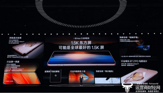 此次一加Ace 3采用全球首发1.5K东方屏,也是发布会亮点之一。在显示方面,一加Ace 3东方屏搭载自研画质引擎,拥有行业最高屏幕峰值亮度4500nit,屏幕寿命达到行业均值 2 倍,在清晰度、色准、色偏、亮度均匀性等维度全面超越同档。