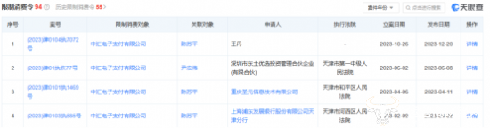 此外,运营商财经网发现,中汇支付法定代表人、经理陈苏平曾多次收到限制消费令,最近一次收到限制消费令的时间是在2023年12月20日。