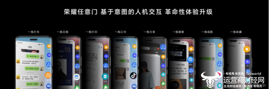 在荣耀Magic6系列,全新标志性的交互功能“任意门”,基于荣耀端侧平台级AI大模型的数据化学习和个性化习惯,通过感知中台,基于多模决策引擎,让各种跨应用操作,轻轻一拖、直达需求,实现突破性的操作体验升级;“智慧成片“功能,基于大模型语义理解能力,只需用户一句话描述需求,即可理解用户意图,自动剪辑成片; “灵动胶囊”,依托低功耗移动平台和荣耀独有的眼动操控技术,智慧领会用户的每一步意图,实现跨应用的全局触达。