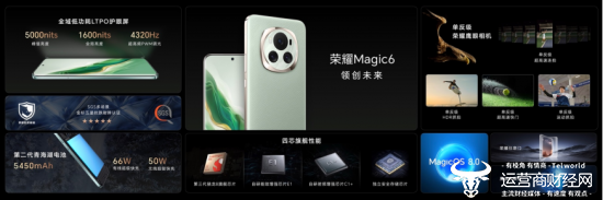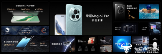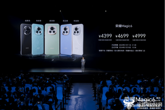 荣耀始终坚持双轮驱动的产品主义,一方面深入洞察用户需求,从消费者需求出发定义产品,另一方面在前瞻技术上加大投入,带来开创性的技术解决方案。此次荣耀Magic6系列,为消费者带来了重构手机直连卫星通信解决方案的荣耀鸿燕通信、全新升级的第二代青海湖电池、超耐摔的荣耀巨犀玻璃、单反级荣耀鹰眼相机、持续引领的荣耀绿洲护眼技术、引领操作系统变革的魔法OS等创新体验。荣耀Magic6系列售价4399元起,将于1月18日正式开售。