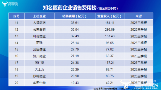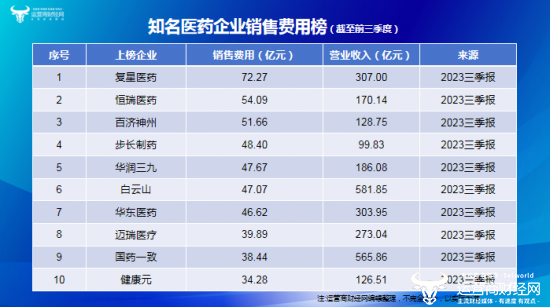 历年来,医药企业的销售费用都是市场关注的重点话题之一。2023年,随着一场席卷整个行业的反腐风暴,药企的销售费用又成了该领域的热点。近期,运营商财经网通过盘点国内上市的多家知名企业的三季报,特意推出“知名医药企业销售费用榜”榜单,以揭示这些企业在销售方面的真实投入,一起来看看谁多谁少吧!