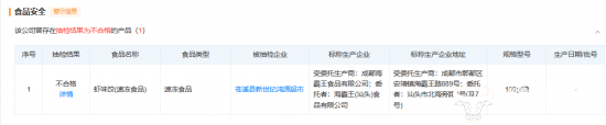 与此同时,此前在苍溪县新世纪鸿源超市当中,抽检出了不合格的虾味饺(速冻食品),而该产品的标称生产企业委托者是海霸王(汕头)食品有限公司,受委托生产商是成都海霸王食品有限公司。