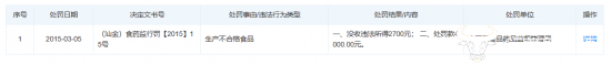 运营商财经网通过天眼查发现,公司此前还曾因食品不合格被罚。在2015年3月5日,该公司因生产不合格的食品,被金平区食品药品监督管理局没收违法所得2700元,并处以罚款4000元。
