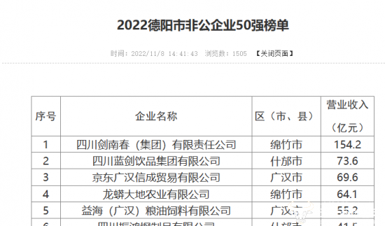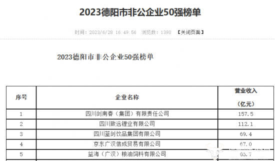 而据德阳市工商业联合会所公布的最新的2023德阳市非公企业50强榜单数据显示,剑南春2022年的营业收入为157.5亿元,离200亿元的差距看起来不大。