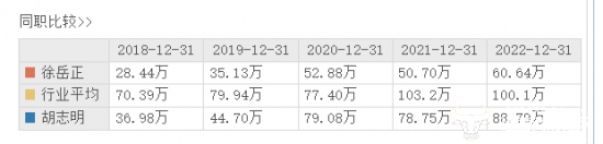 据财报显示,徐岳正2022年从公司获得的报酬为60.64万元还不错,但不如另一副总胡志明,他的薪酬为88.79万元。不过根据东方财富网的数据显示,从2018年到2022年,徐岳正的薪酬就一直比胡志明的少。