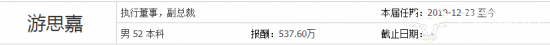 同花顺财经网显示,游思嘉2022年的薪酬为537.6万元。此前,他的薪酬曾达1521.5万元,如今已经降了不少。