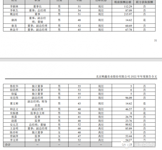 但据顺鑫农业2022年年报显示,魏金旺该年从公司获得的报酬为215.97万元,是公司里薪酬最高的那个,不仅比厂长宋克伟的薪酬多了119.88万元,还比董事长李颖林的薪酬多了103.68万元。