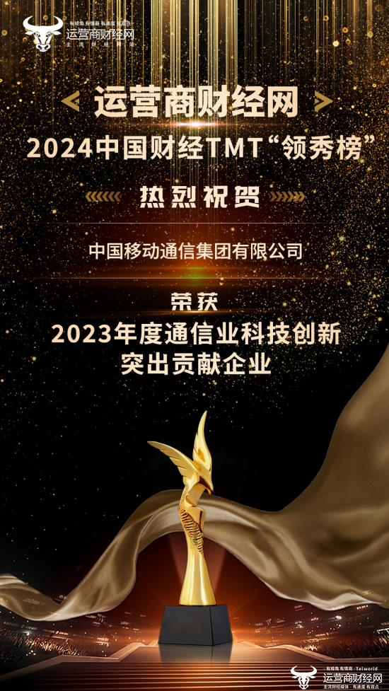 其中,热烈祝贺中国移动通信集团有限公司斩获“2023年度通信业科技创新突出贡献企业”大奖。
