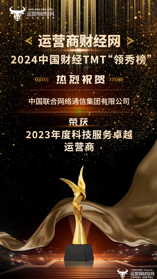 在众多优秀的企业及产品中,中国联合网络通信集团有限公司凭借出色的表现,夺得了“2023年度科技服务卓越运营商”荣誉,热烈祝贺!