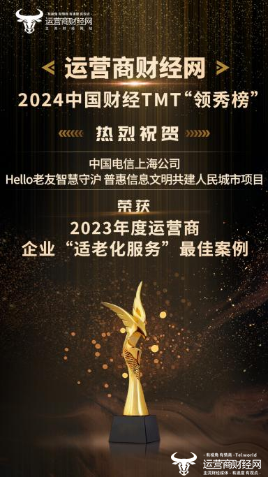 其中,中国电信上海公司的“ Hello老友智慧守沪 普惠信息文明共建人民城市项目”荣获2023年度运营商企业“适老化服务”最 佳案例奖。