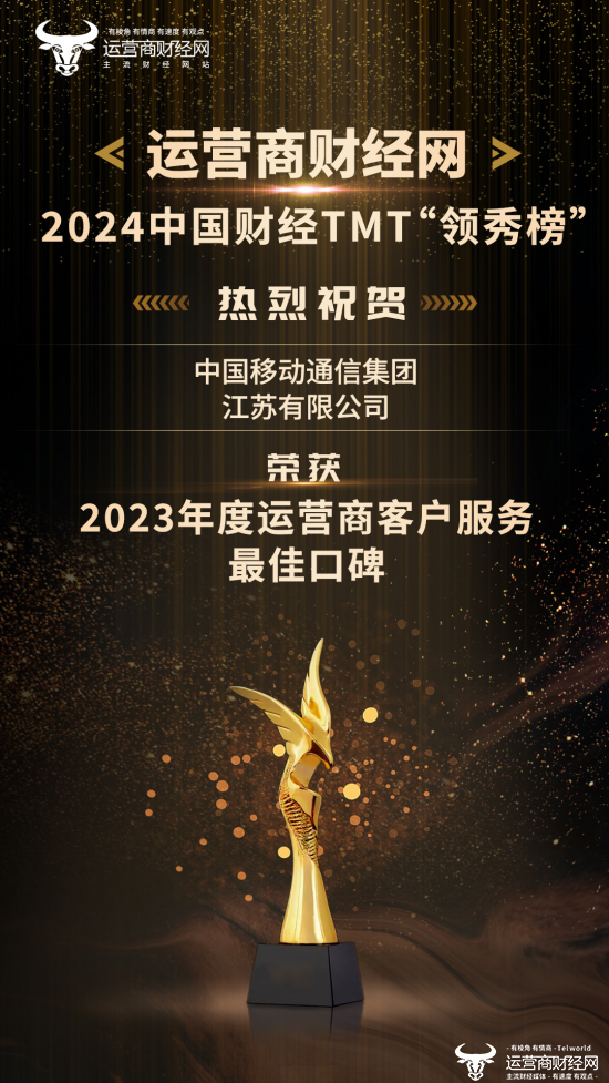 中国移动通信集团江苏有限公司经过“群雄角逐”,荣获“2023年度运营商客户服务最 佳口碑”荣誉。