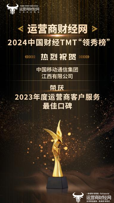 1月21日,由国内知名财经、科技资讯平台——运营商财经网独家举办的2024中国财经TMT“领秀榜”盛典在北京国际饭店成功举办。盛典期间,运营商财经网正式公布了年度评选的获奖名单,并对获奖者颁发了获奖证书,其中,中国移动通信集团江西有限公司荣获“2023年度运营商客户服务最 佳口碑”奖项。