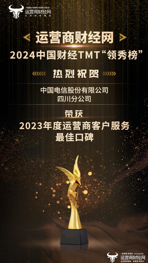 在众多优秀企业中,中国电信股份有限公司四川分公司经过激烈角逐脱颖而出,荣获“2023年度运营商客户服务最 佳口碑”奖项。
