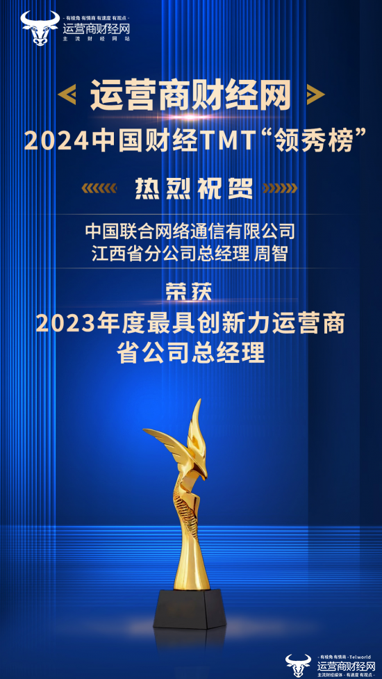 其中,江西联通总经理周智荣获“2023年度最具创新力运营商省公司总经理”奖项。