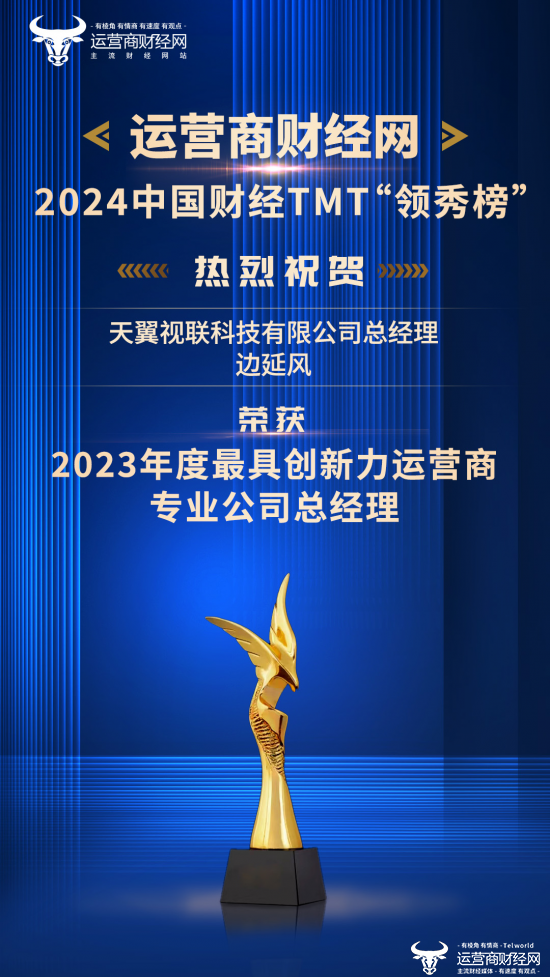 其中,天翼视联科技有限公司总经理边延风获“2023年度最具创新力运营商专业公司总经理”。